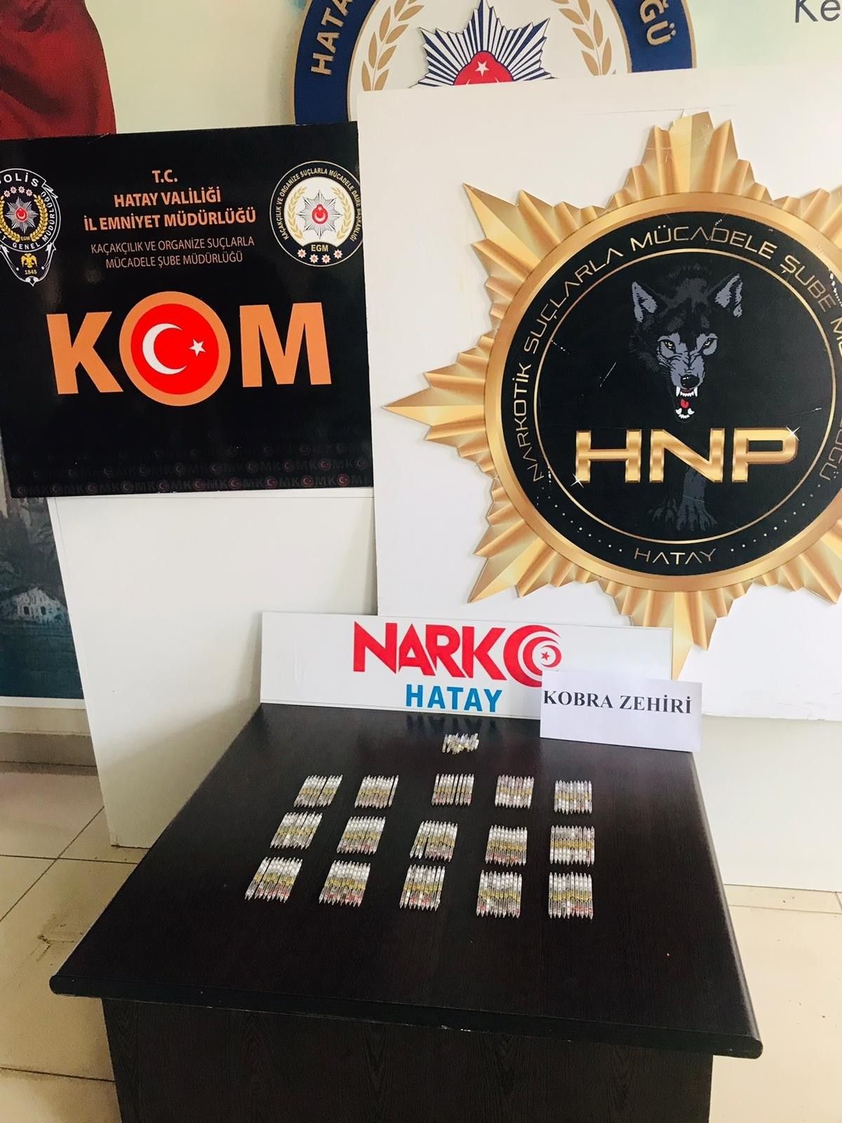 Alınan bilgiye göre, Hatay Emniyet Müdürlüğü Narkotik Suçlarla Mücadele Şube Müdürlüğü, Kaçakçılık ve Organize Suçlarla Mücadele Şube Müdürlüğü ve İstihbarat Şube Müdürlüğü ekiplerince yapılan çalışmalar sonucunda, A.A, O.D ve M.H.A isimli şahısların iki otomobil ile Samandağ ilçesine yasaklı maddeleri getirdikleri tespit edilmesi üzerine operasyon düzenlendi. Otomobillerde yapılan aramalarda bagajın içindeki bavuldan toplam 156 tüp kobra yılan zehri bulundu.