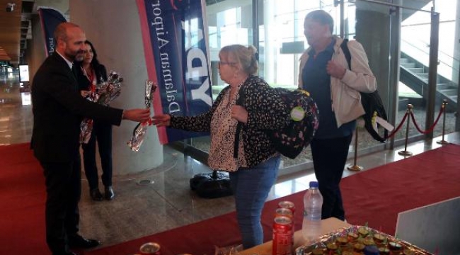 MUĞLA'nın Dalaman ilçesine İngiltere'den gelen turist kafilesi havalimanında çiçeklerle karşılandı.