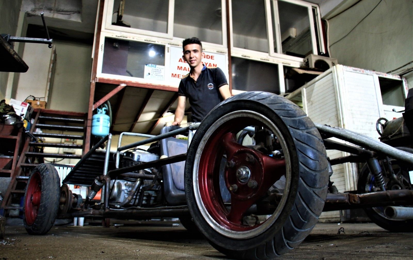 Mersin'in Erdemli ilçesinde torna ustası genç 3 yıl emek verip, mesaisi dışında çalışıp, haftalığından arttırdığı 5 bin lira ile kendi arabasını yaptı.