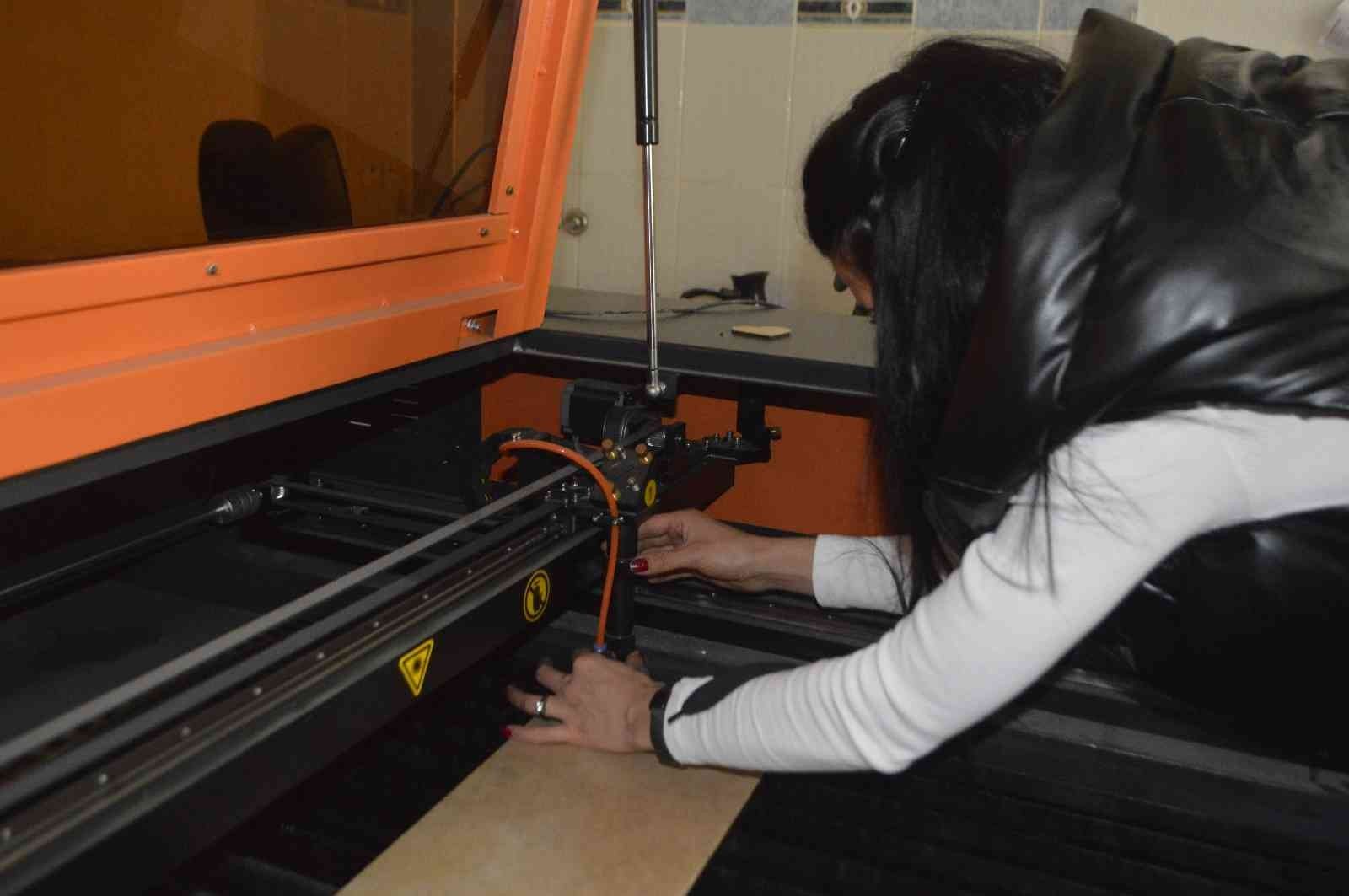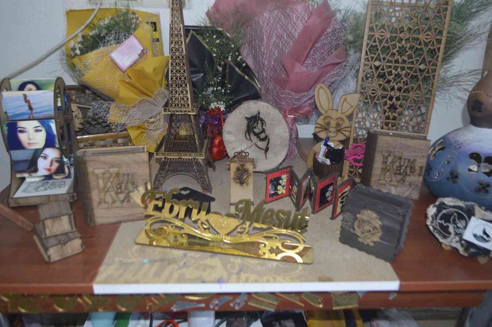 Eşinin de bir hayali olduğunu ve eşinin bu hayalini de birlikte gerçekleştirdiğini ifade eden Ebru Aykul, "Ben evliyim bir kızım var. Aslında bu iş eşimin hayali idi. Sürekli kıl testeresi ile ahşap oyuyordu, hat sanatı yapıyordu ve bunu ilerletemedi. Sonra bıraktı bu çalışmaları. Sonra bu hayali elinden ben aldım. Eşimin hayalini de gerçekleştirmiş oldum. Bu işin ucundan tuttum ve adeta benim hayalim oldu bu iş. Daha sonra araştırmalar yaptım ve genç girişimci olarak KOSGEB'e başvurdum. Yüzde 75 hibe desteği ile makinelerimi aldım. Bu işimi daha da ilerletmeyi düşünüyorum" ifadelerini kullandı.