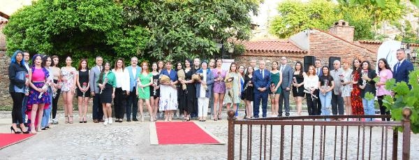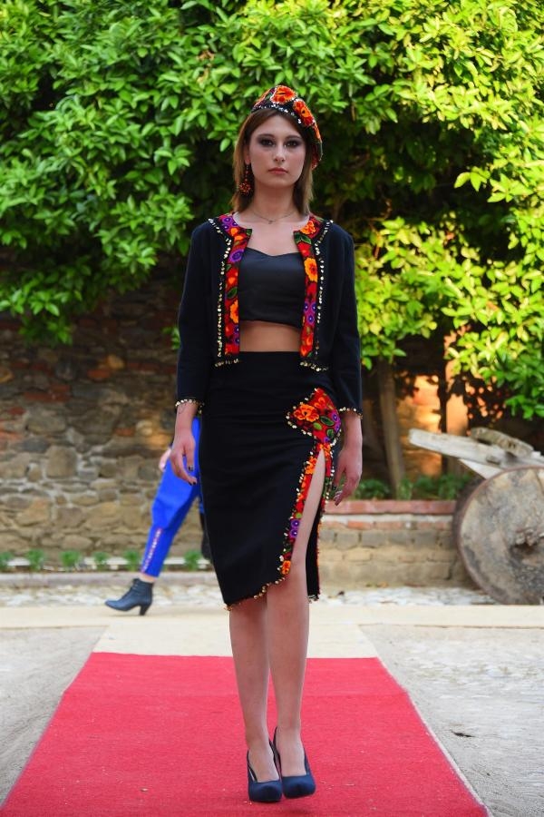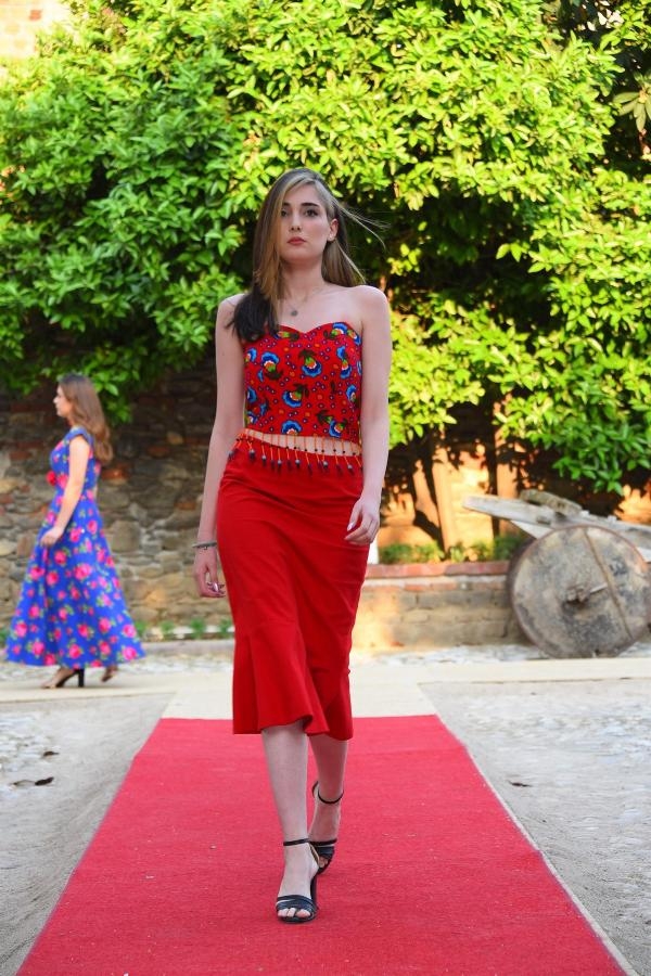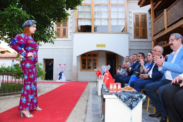 MANİSA'da Kent Müzesi'nde üniversite öğrencilerinin 'Hayat Pazende' adıyla düzenlediği defilede pazen kumaşıyla tasarlanan kıyafetlerden ay yıldızlı elbise yoğun ilgi gördü.