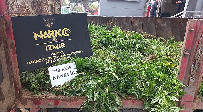 İzmir Narkotik Suçlarla Mücadele Şube Müdürlüğü, Ödemiş Narkotik Suçlarla Mücadele Büro Amirliği ve İstihbarat Şube Müdürlüğü görevlilerince yapılan çalışmada, Ödemiş ilçesindeki bir hayvan damında uyuşturucu madde imalatının ve ticaretinin yapıldığı bilgisi alındı. Savcılık koordinesinde adreste yapılan aramada; 38 kilo 750 gram esrar, 749 kök kenevir bitkisi ve 1 hassas terazi ele geçirildi.