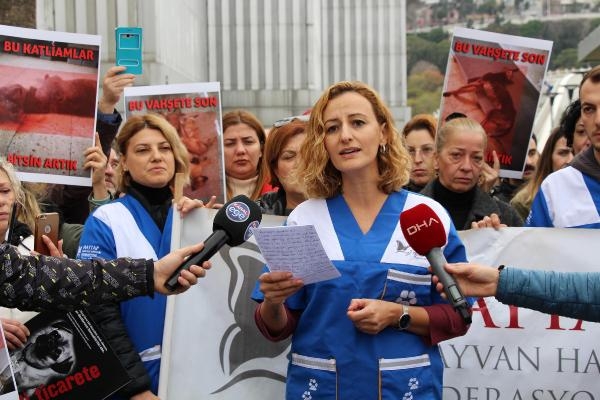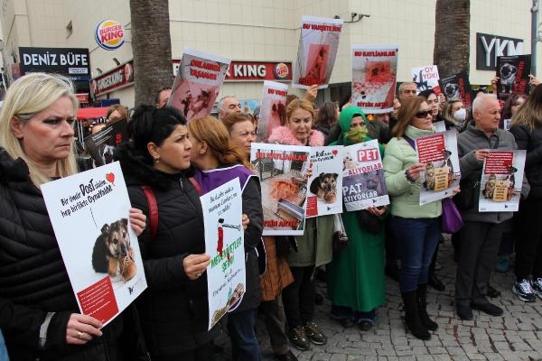 İzmir'de, hayvan hakları odaklı sivil toplum örgütleri ve hayvanseverler, Konya ve Ankara'daki barınaklarında hayvanlara yönelik şiddet görüntülerini protesto etti. Konak'ta bir araya gelen hayvanseverler, kamuoyunun tepkisini çeken şiddet olaylarına ilişkin basın açıklaması yaptı. Hayvanseverler, 'Bu katliamlar bitsin artık', 'Bu vahşet son bulsun artık', 'Kirli ticarete hayır', 'Pet alıyorlar, pat atıyorlar', 'Kısırlaştır, aşılat, yaşat' yazılı dövizler taşıyarak, hayvanlara yönelik şiddeti tepki gösterdi.