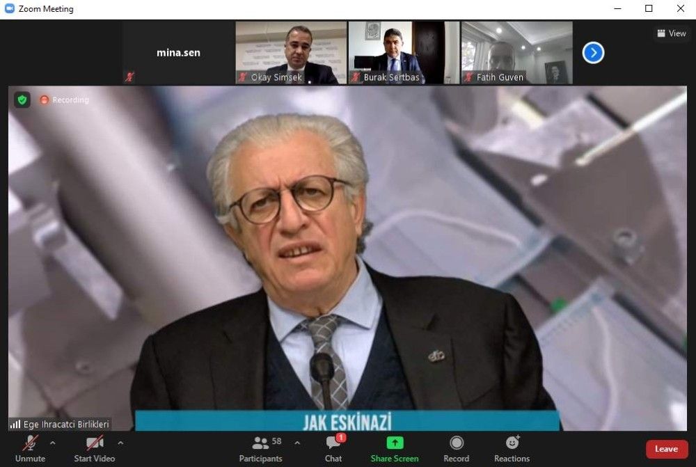 Ege Giyim Sanayicileri Derneği'nin (EGSD) pandemide tedarik sektörünü ele aldığı panele Ege İhracatçı Birlikleri Koordinatör Başkanı Jak Eskinazi ve Ege Hazırgiyim ve Konfeksiyon İhracatçıları Birliği (EHKİB) Başkanı Burak Sertbaş katıldı. Toplantının moderatörlüğünü ise EGSD Yönetim Kurulu Başkan Yardımcısı Okay Şimşek yaptı.