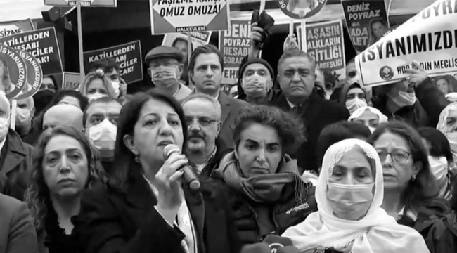 İzmir'de, HDP il binasında tabancayla vurularak öldürülen Deniz Poyraz'ın davası öncesi HDP'liler tarafından yapılan açıklama ve eyleme CHP İl Başkanı Yücel ile CHP Milletvekili Sezgin Tanrıkulu da katıldı.