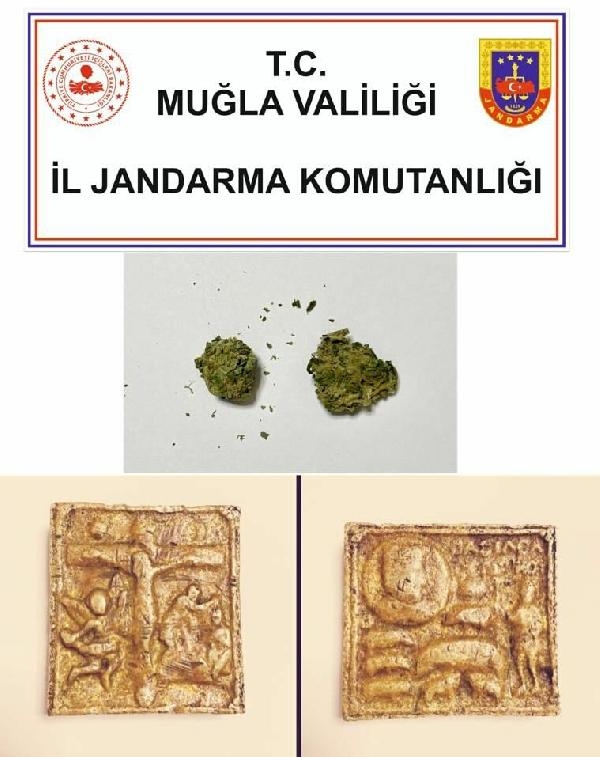 MUĞLA'nın Milas ilçesinde jandarmanın düzenlediği operasyonda Helenistik döneme ait altın tablet ile bir miktar kubar esrar ele geçirildi, 3 kişi gözaltına alındı.