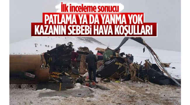 Helikopter kazasının ardından yapılan ilk incelemelere ilişkin bilgi veren Milli Savunma Bakanlığı, kazanın olumsuz hava şartları nedeniyle gerçekleştiğini açıkladı.