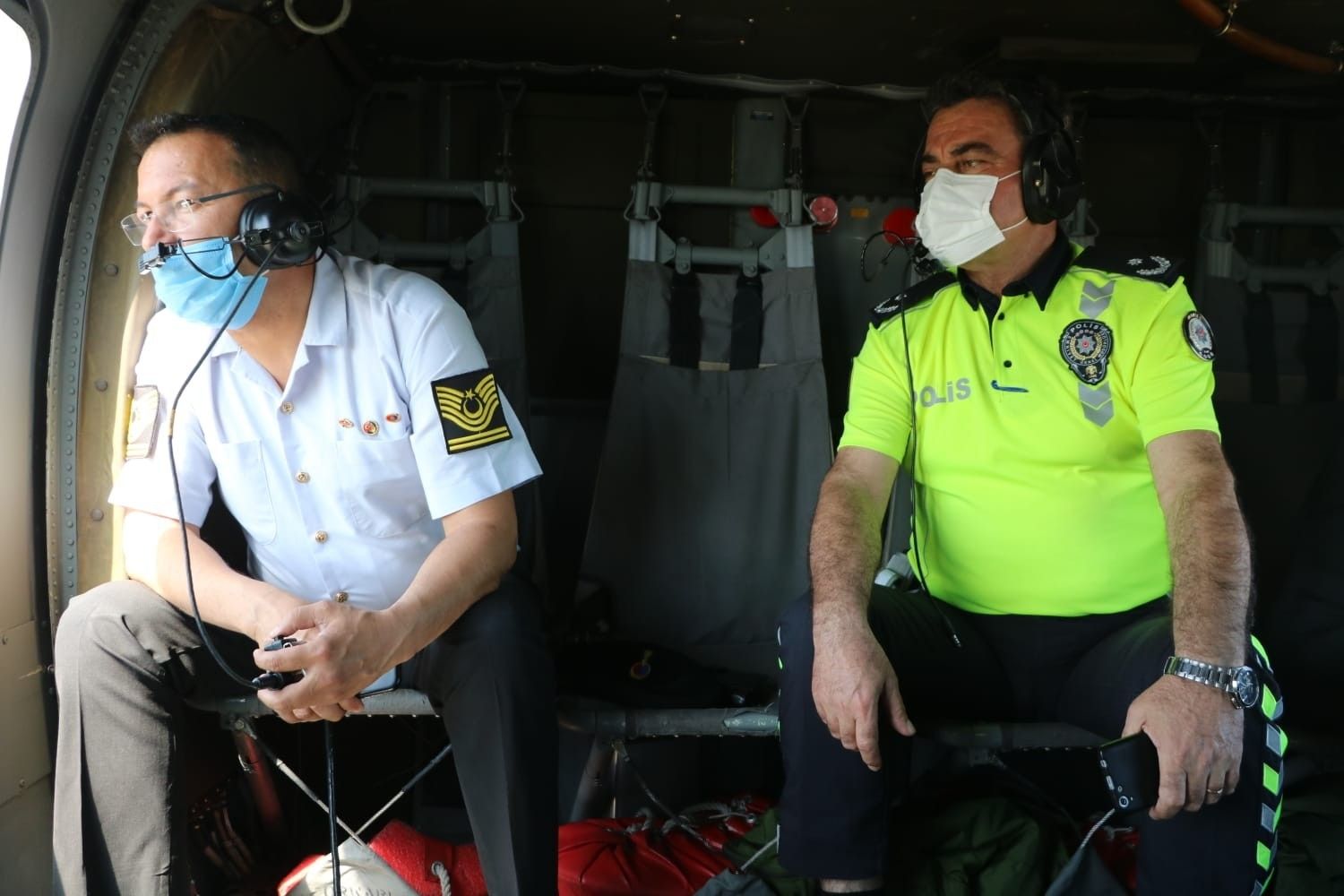 Manisa'da İl Jandarma Komutanlığı ile İl Emniyet Müdürlüğü tarafından düzenlenen helikopter destekli trafik denetiminde trafik ihlali yapan 33 araç ve sürücüsüne trafik idari para cezası uygulanırken, 14 araç ise trafikten men edildi.