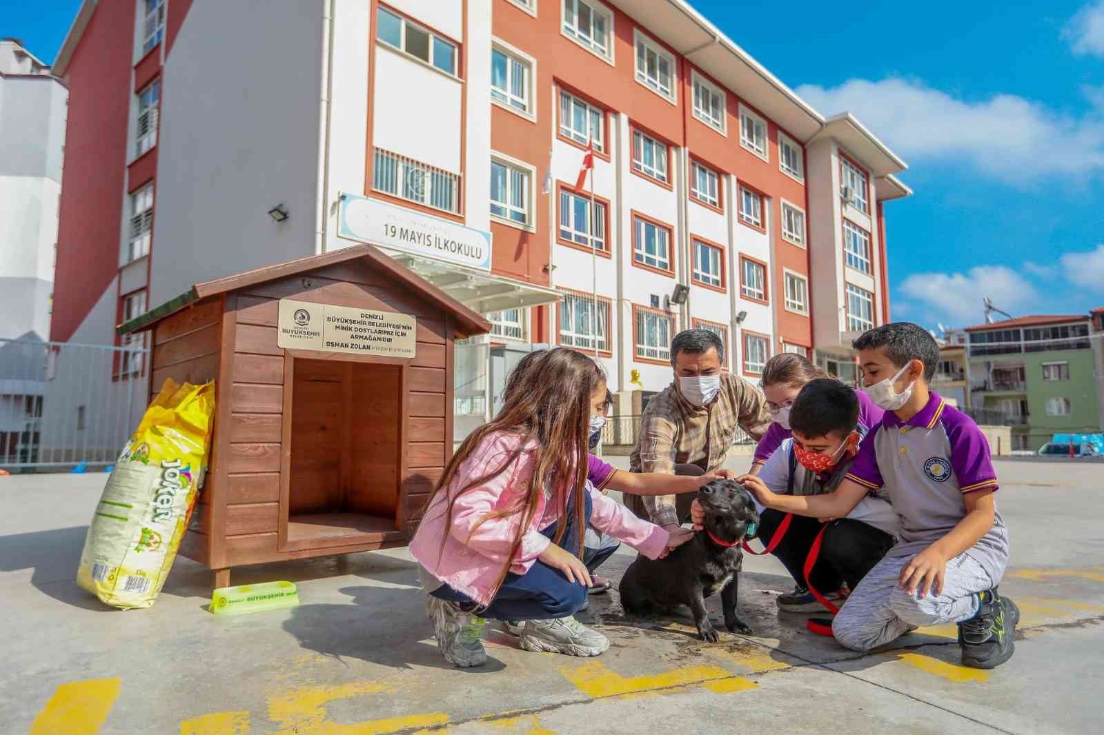 Denizli Büyükşehir Belediyesi ve Denizli Milli Eğitim Müdürlüğü arasında 4 Ekim Dünya Hayvanları Koruma Günü'nde imzalanan "Minik Kalpler Can Dostlarımız İçin Atıyor" projesi ile toplam 67 okula köpek kulübesi ile bakımını üstlenecekleri can dostları teslim edilmeye başlandı. Denizli Büyükşehir Belediyesi Sokak Hayvanları Barınma, Rehabilitasyon Merkezi ve Doğal Yaşam Parkı'nda bakım ve aşıları yapılan 3 sokak köpeği ilk etapta Milli Eğitim Müdürlüğü ile Ahi Sinan İlkokulu ve 19 Mayıs İlkokulu'na teslim edildi. Köpeklerin ve kulübelerinin okullara yerleştirilmesini sevinçle izleyen çocuklar çok mutlu olduklarını belirterek, kendilerine can dostları hediye eden Denizli Büyükşehir Belediyesine teşekkür etti. Çocuklar, bir süre yeni dostlarına ne isim vereceklerini konuşurken, köpekleri beslemeyi ve sevmeyi de ihmal etmedi.