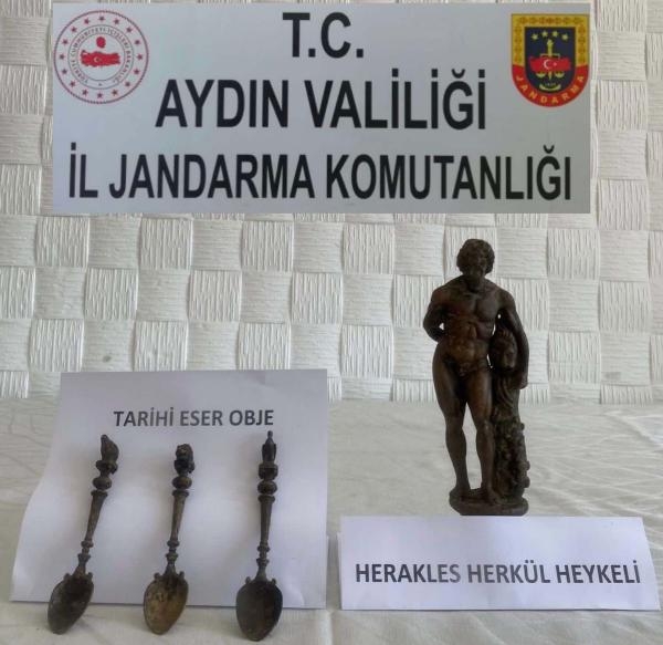Aydın'ın Söke ilçesinde, jandarmanın düzenlediği operasyonda elindeki Herkül (Herakles) heykeli başta olmak üzere çeşitli objeleri satmak isteyen şüpheli Y.K., suçüstü yakalanarak gözaltına alındı.