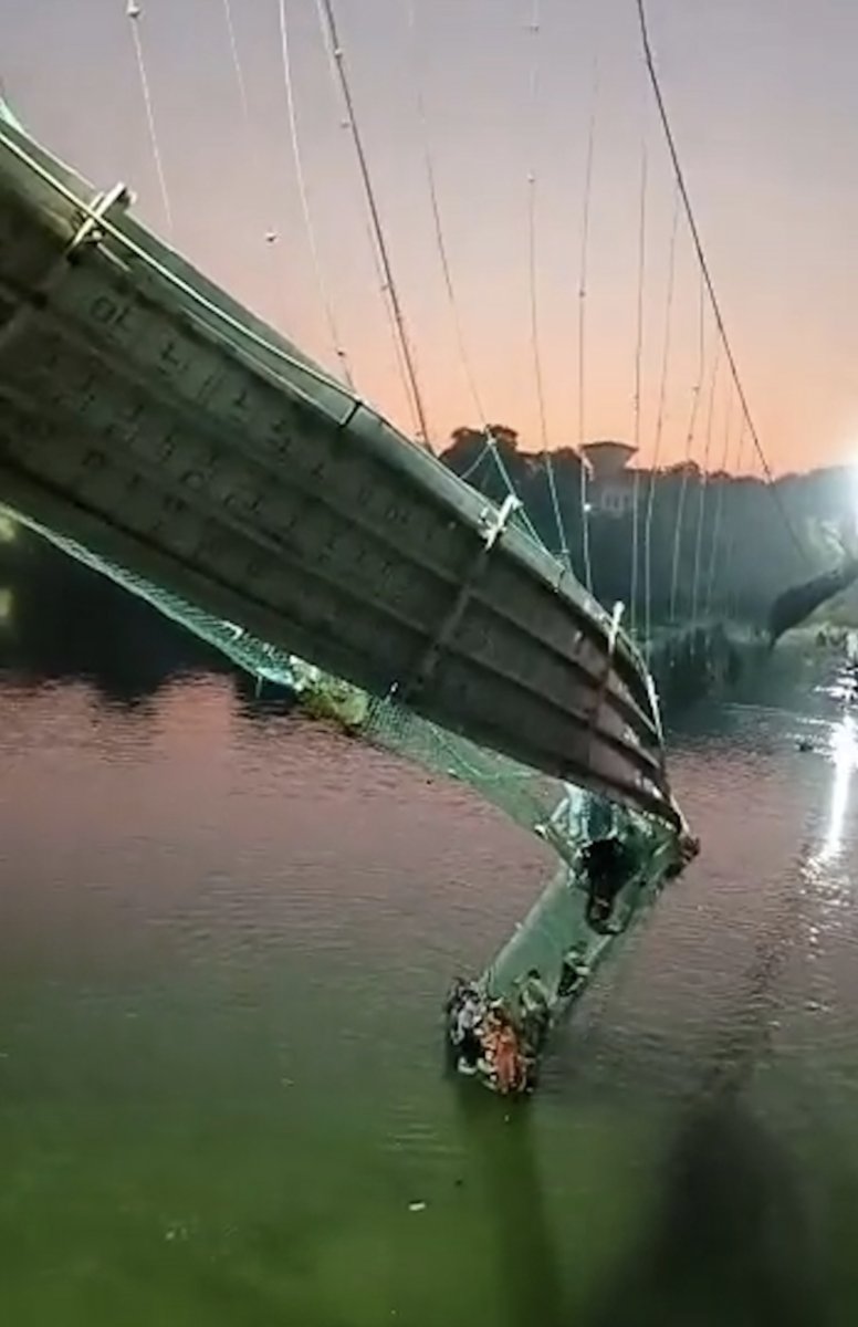 Hindistan'ın Gujarat eyaletinde bulunan ve ülkenin en uzun köprülerinden biri olarak bilinen asma köprünün çökmesi sonucu yüzlerce kişi nehre düşerken, en az 32 kişinin öldüğü bildirildi.