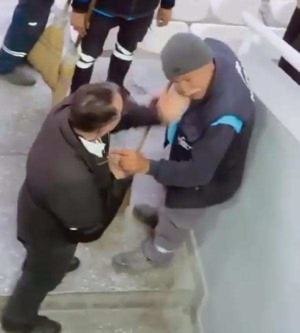 İZMİR'in Buca ilçesindeki hipodromda temizlik görevlisi İrfan Güneç (48), yarışları izlemeye gelen Melih Döleneken'in tokatlı saldırısına uğradı. O anlar, cep telefonu kamerasıyla görüntülendi. Güneç, "Koşarak yanıma gelip tokat attı. Şikayetçiyim" dedi.