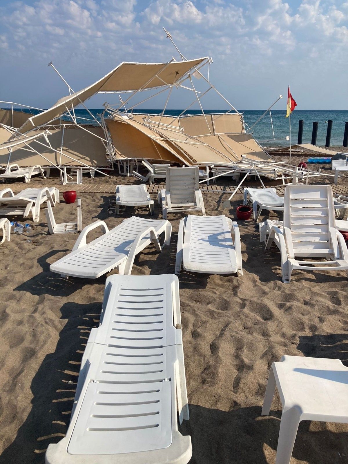 Kısa süren ancak etkili olan hortumun ardından sahilde savrulan gölgelik ve şezlonglar otel görevlileri tarafından toplanarak yeniden düzenleme yapıldı.