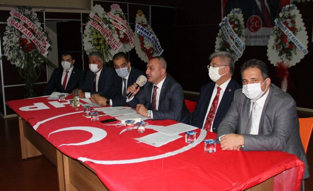 MHP olarak çalışmalarımıza ilk önce evimizden başlayacağız. Önce evimizdeki eşimizi, oğlumuzu, kızımızı MHP'li yapacağız. İktidardaki partilere bakarsanız kadın seçmenlere büyük önem veriyorlar. Bizde en az onlar kadar kadın seçmenlere önem vereceğiz. Genel Başkanım Devlet Bahçeli'nin belirtiği gibi, Cumhur ittifakına samimi olarak sarılacağız. Bütün teşkilatlarımız, genel merkezimize bağlı olacağız. Ülkücü ülkücünün öz kardeşidir. Bu dönemde kongrelerimizi tek aday ile yapıyoruz. İl kongremizi de tek adayla yapıyoruz. Adaylığı düşünen Sadık Tekeş, genel merkezimizin görüşleriyle adaylıktan çekilmiştir. Kendisine teşekkür ediyorum" ifadelerini kullandı.