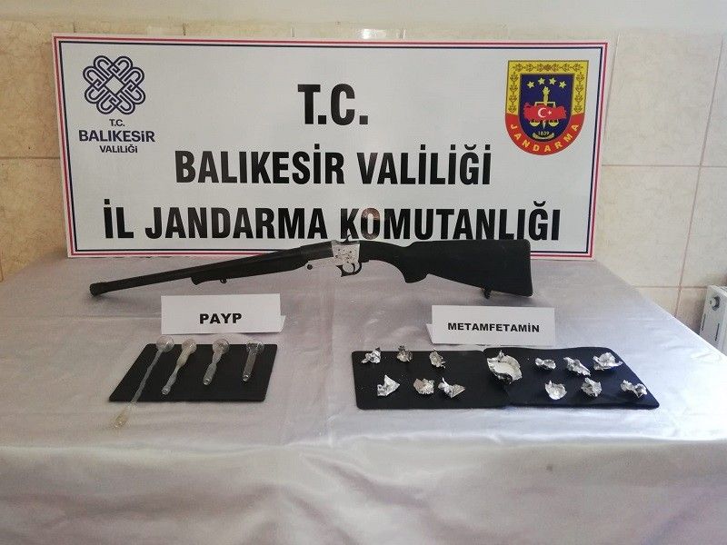 Balıkesir İl Jandarma Komutanlığı ekipleri, uyuşturucu madde imal ve ticaretine yönelik yapılan çalışmalar neticesinde, Erdek ve Burhaniye ilçelerinde uyuşturucu madde bulundurduğu ve ticareti yaptığı tespit edilen 8 şüphelinin araçları ve ikamet adreslerinde yapılan aramalarda 35 gram metamfetamin, 4 adet uyuşturucu içme aparatı, 2 adet ruhsatsız av tüfeği, 2 adet ruhsatsız tabanca, 24 adet tabanca fişeği, 1 adet pala ele geçirdi. Cumhuriyet Savcılığının talimatı ile ele geçirilen malzemelere el konularak şüpheliler hakkında adlî tahkikata başlanıldı.