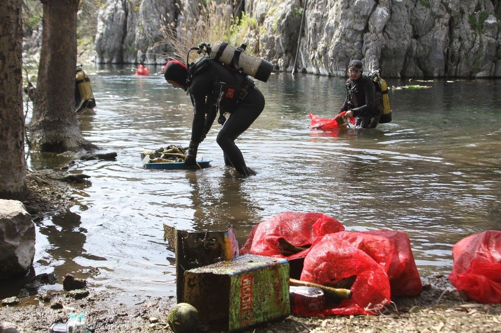 Atık maddelerin içme suyu kaynaklarına zarar verdiğini belirten Ahmet Akdağ, "Suyun altından neler çıkartmadık desek daha iyi olur. Tenekeler, atık şişeler, araba contası, çamaşır leğeni gibi aklınıza gelebilecek organik ve inorganik maddeler çıkartıldı. Çıkarttığımız tenekelerin tamamı küflenmiş durumda. Tenekeler, çeşitli su altı canlılarını avlamak için yapılmış küçük tuzaklar içeriyor. Bu tuzaklar, kullanım sonrası su altına bırakılmış. O kadar çok küflenmişler ki elimize aldığımızda dağıldığını gördüm. Bunlar oksitlenerek Antalya'nın içme suyu kaynaklarına inanılmaz derecede kirlilik ve zarar vermekte" diye konuştu.