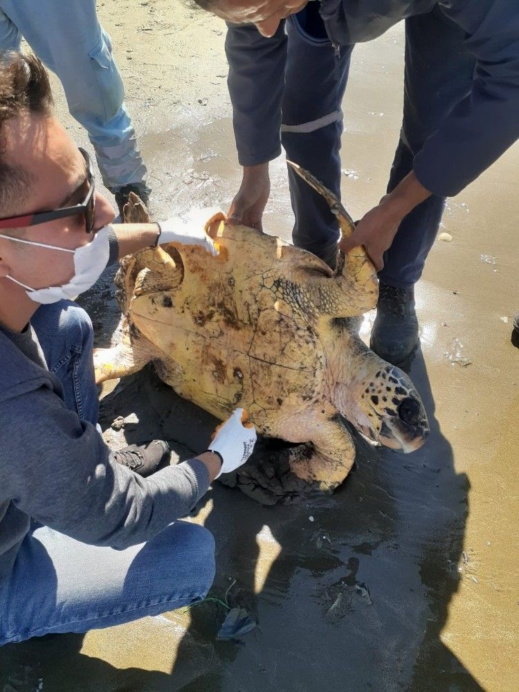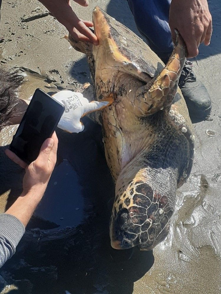 Adana'da nesli tükenme tehlikesi altında olan caretta caretta, Karataş ilçesi Harbiş Sahili'ne vurmuş halde, yaralı olarak bulundu. Yaralı deniz kaplumbağası bedenine saplanan iğnelerden kurtarılıp doğaya bırakıldı.