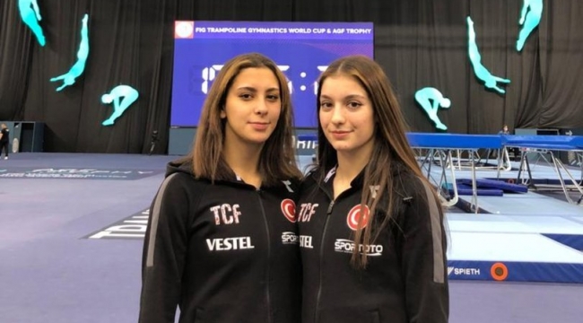 Ay-yıldızlı cimnastikçiler Sena Elçin Karakaş ve İzmirli Sıla Karakuş, Trampolin Cimnastik Dünya Kupası'nda kadınlar senkronize finalinde 44.140 puanla birinci oldular