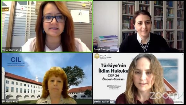 Yaşar Üniversitesi Akdeniz Uygulama ve Araştırma Merkezi'nin Singapur Ulusal Üniversitesi Uluslararası Hukuk Merkezi, Piri Reis Üniversitesi ve Çevre Çalışmaları Akademisi ile ortaklaşa düzenlediği 'İklim Değişikliği, COP26 ve Türkiye: Hukuksal Perspektif' başlıklı seminer çevrim içi yayınlandı. Akdeniz Uygulama ve Araştırma Merkezi Uzmanı Dr. Defne Gönenç'in moderatörlük yaptığı etkinliğe Birleşmiş Milletler Uluslararası Hukuk Komisyonu Üyesi ve Singapur Ulusal Üniversitesi Uluslararası Hukuk Merkezi başkanı Prof. Dr. Nilüfer Oral, Selçuk Üniversitesi İktisadi ve İdari Bilimler Fakültesi Öğretim Üyesi Doç. Dr. Zerrin Savaşan ve Piri Reis Üniversitesi Medeni Hukuk Anabilim Dalı Başkanı Doç. Dr. Başak Başoğlu Kapancı konuşmacı olarak katıldı.