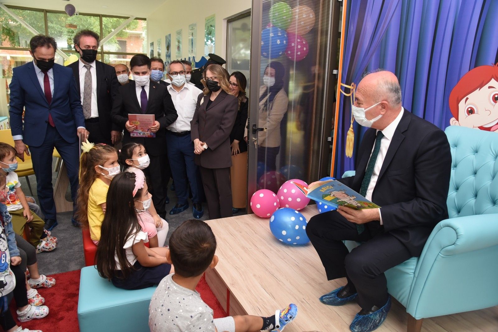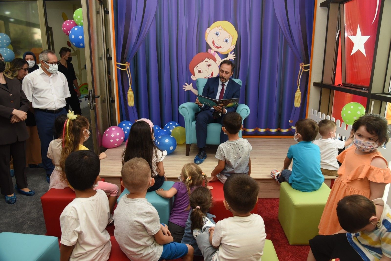 Açılış kurdelesini çocuklar ile birlikte kesen protokol daha sonra oluşturulan masal köşesinde çocuklara masal okudular. Kütüphanenin iç tefrişatını oldukça beğenen katılımcılar çocuklarla birlikte incelemelerde bulundular.