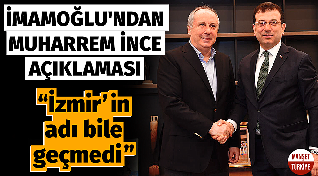 İnce'nin adaylığı ile ilgili soruya cevap veren İmamoğlu, "Hiç öyle bir konu dahi geçmedi. Hadi şöyle söyleyeyim, ki konuşulabilirdi. Bilgi paylaşımı olabilirdi. Hani kod adı İzmir ise eğer İzmir'in ismi bile geçmedi sohbetimizde." diye konuştu.