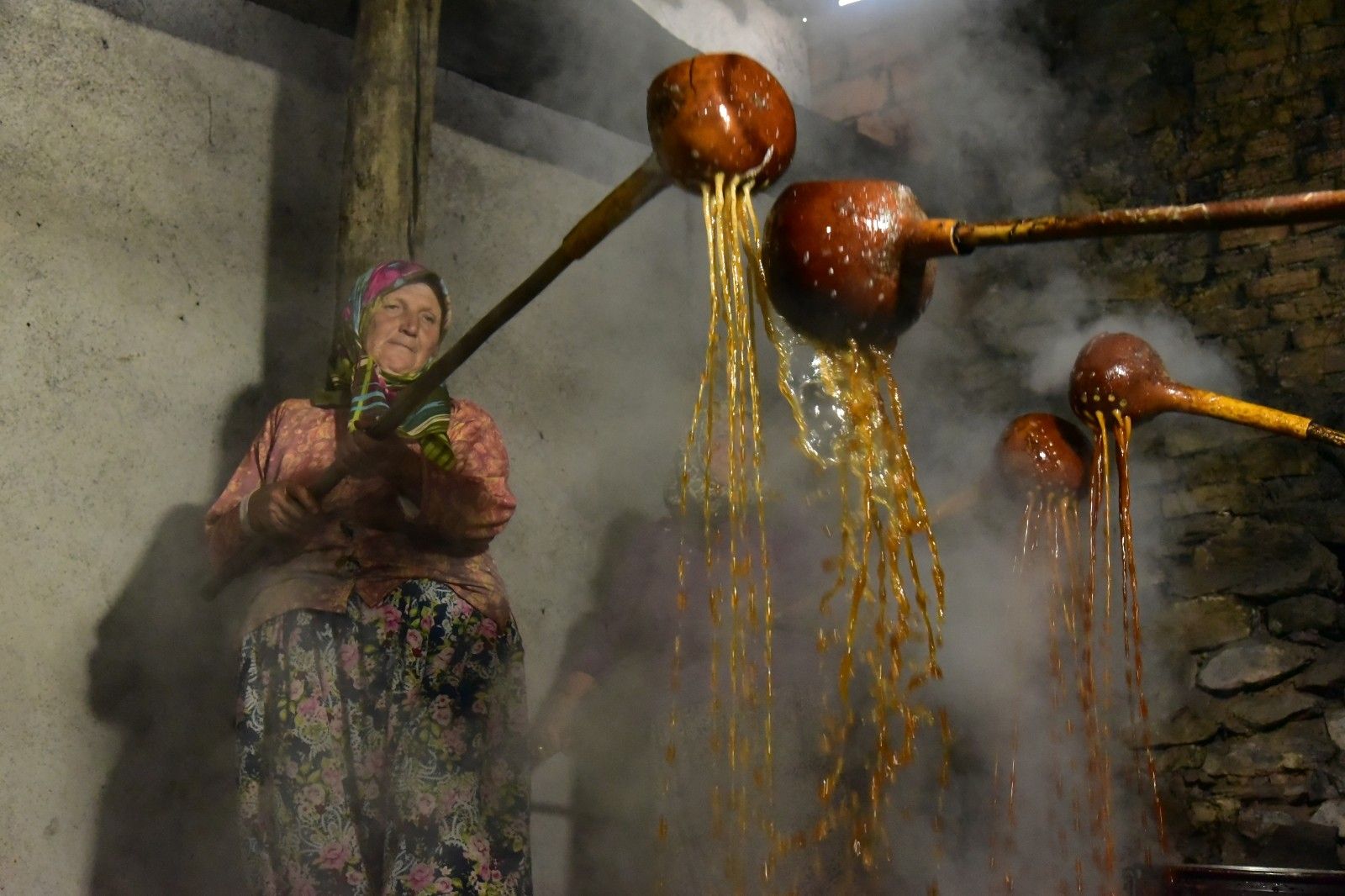 Düğüncüler köyü muhtarı İbrahim Kaya ise, "Üzüm bağlarımız var. Bu üzüm bağlarını çapalarız, otlarını ayıkladıktan sonra doğayla baş başa bırakırız. Olan üzümleri şaraphaneye getiririz. 3-5 kişi toplanır, birbirlerine yardım ederler. Böylece yardımlaşarak pekmezlerimizi elde ederiz. 10 Eylül ile 30 Eylül arasında üzümün verimine göre devam eder. Gece gündüz burası hiç kapanmaz" dedi.