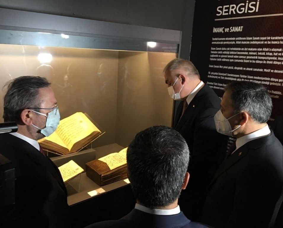 İnanç ve Sanat sergisi gezdikten sonra konuşan Bakan Ersoy, "Çok değerli eserler var. Daha önce Topkapı Sarayı envanterinde bulunan eserleri burada sergiliyoruz. Hem Hz. Ali hem de Hz. Osman dönemine ait Kuran'ı Kerimler burada. Orijinal Kuran'ı Kerim'in bazı sayfaları burada" dedi.