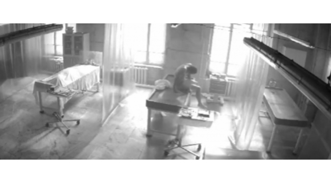 Sedye üzerinde beyaz örtü altında yatan cesedin, bir anda canlandığı görüldü. Üzerindeki örtüyü kaldırarak ayağa kalkmaya çalışan Rus, vücudunun kaskatı kesilmesiyle güçlükle hareket edebildi. Ayağa kalktıktan sonra birkaç adım atan adam, daha sonra ise sedyeden destek almaya başladı.