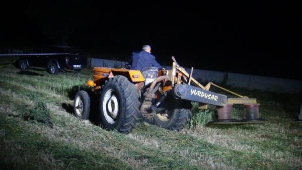 MUĞLA'nın Bodrum ilçesinde Orhan Kuş, traktörüne bağlı ot biçme makinesiyle çalışırken seken bir taş, o sırada tarlada çalışan oğlu Nebi Kuş'un (38) boynuna isabet etti. Nebi Kuş yaşamını yitirirken, fenalık geçiren baba hastaneye kaldırıldı.