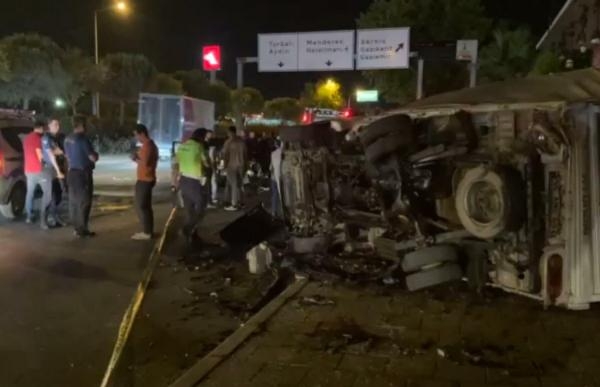 Kamyonette sürücüsü Fehmi Özparıltılı ile araçta sıkışan eşi İnci Özparıltılı ve 8 aylık oğlu Özkan Özparıltılı yaralandı. Yarış halinde olan 35 BOS 208 plakalı otomobil ise demir korkuluklara çarparak durdu. Çevredekilerin durumun 112 Acil Çağrı Merkezi'ne bildirilmesi üzerine olay yerine çok sayıda sağlık, polis ve itfaiye ekibi sevk edildi. Polis ekipleri, kaza bölgesinde güvenlik önlemi alırken, itfaiye ekipleri kamyonette sıkışan anne ve bebeğini bulunduğu yerden güçlükle çıkardı. Yaralılar ambulansla çevre hastanelere kaldırıldı.