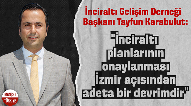 İnciraltı Planları'nın tamamlanarak askıya çıktığının duyrulmasının ardından, İnciraltı Gelişim Derneği Başkanı Tayfun Karabulut süreç hakkında "İzmir açısından da adeta bir devrimdir." dedi.