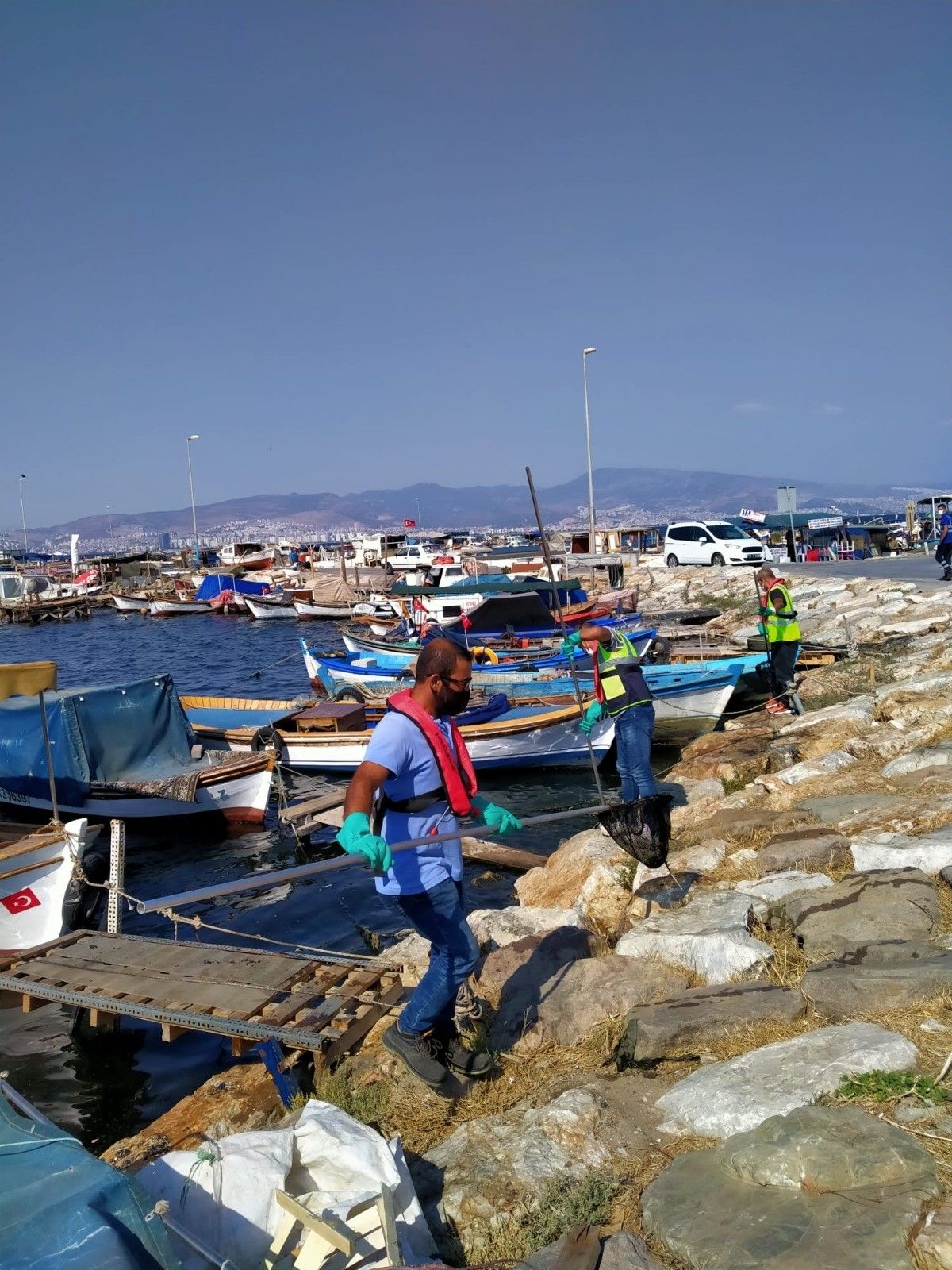 İzmir Büyükşehir Belediyesi Atık Yönetimi Dairesi Başkanlığı ekipleri, İnciraltı Balıkçı Barınağı bölgesinde çevreye bırakılan atıkları tek tek temizledi. Kayaların arasında da detaylı bir temizlik çalışması yapan ekipler torbalarca çöp topladı. İtfaiye dalgıç ekibi de denizde dip temizliği yaptı. Denizden ve kıyıdan araba lastiği, naylon torba, hurda malzeme, şişe ve içecek kutuları çıktı.