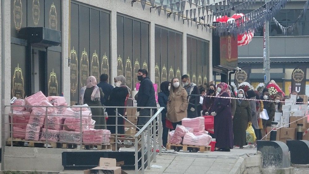 Bursa'da yeni açılan bir mağazanın yaptığı indirim kampanyası vatandaşa korona virüsü unutturdu. 2 tane ucuz kap almak için sosyal mesafenin hiçe sayıldığı kuyrukta beklediler.