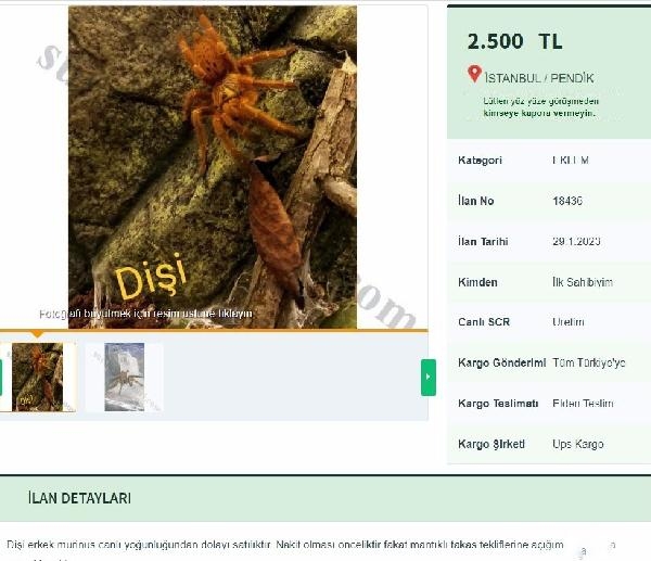 Tarantulaları satışa çıkartanların ilanların açıklama kısımlarına yazdıkları şu ifadeler ise dikkat çekiyor: