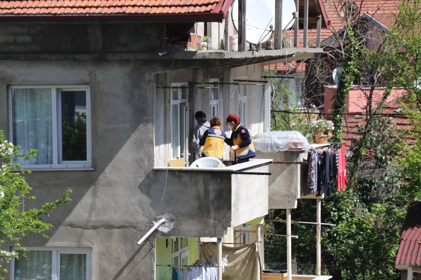 Olay yerine gelen Cumhuriyet Savcısı'nın incelemesinin ardından Olay Yeri İnceleme Şube Müdürlüğü'ne bağlı ekip olay yerinde inceleme yaparak delil topladı. Balkonun bulunduğu bölgeye gelerek komşularının cansız bedenini gören vatandaşlar korkunç manzarayı telefonlarına kaydetti.