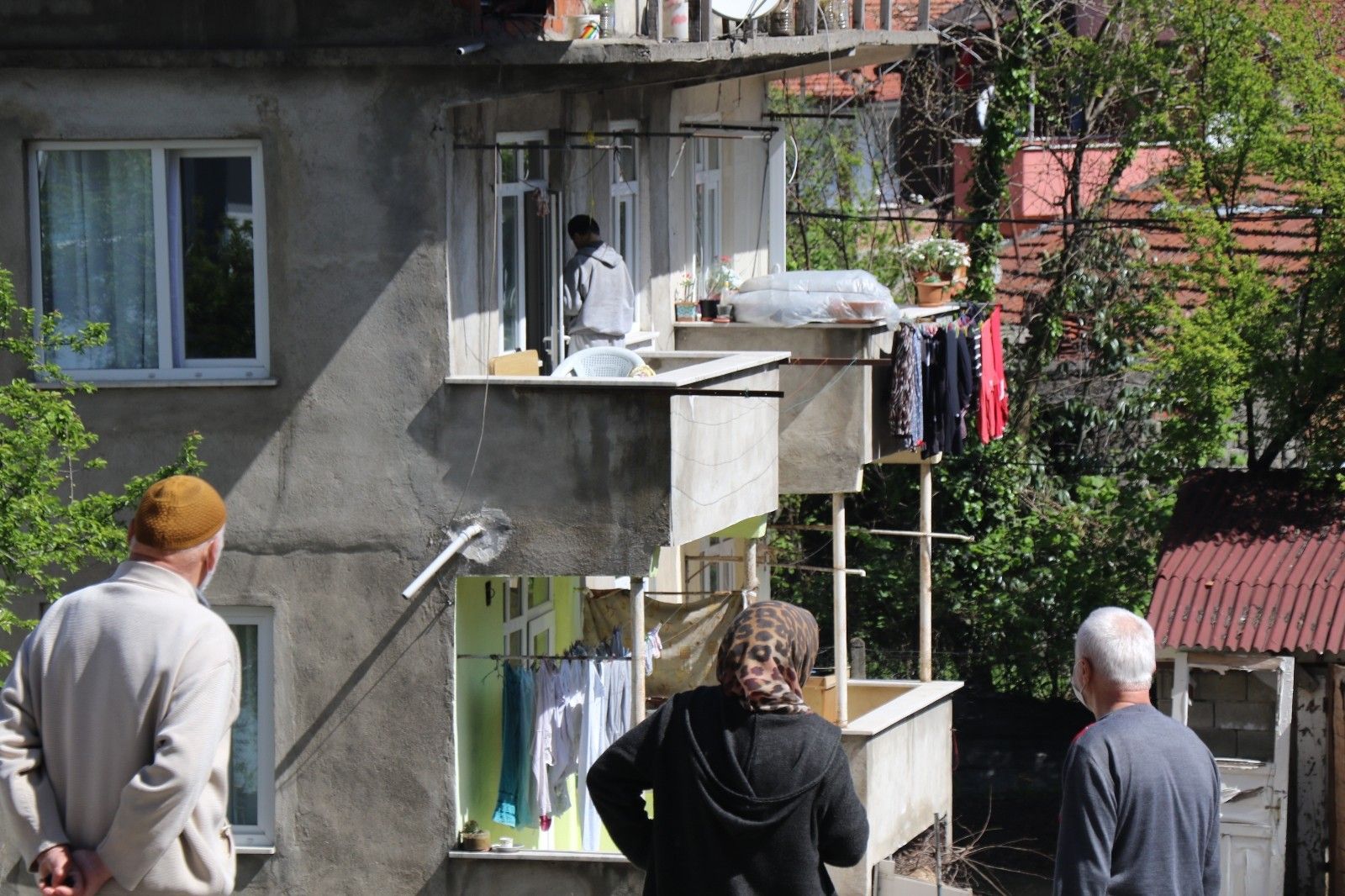 Zonguldak'ta emekli bir maden işçisi, iki katlı binanın üst katındaki evinin balkonunda kendini astı. Mahalleli ise telefonla fotoğraf çekmeye çalıştı.