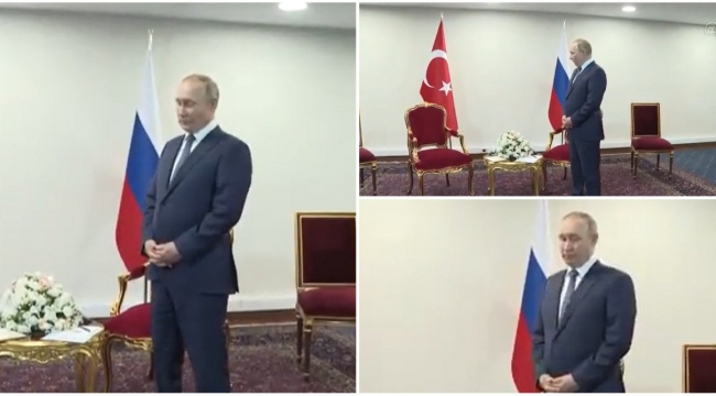 Toplantı saatinde kameraların karşısına geçen Putin, Erdoğan’ı beklemek zorunda kaldığı ve garip bir durumda yaşandı.