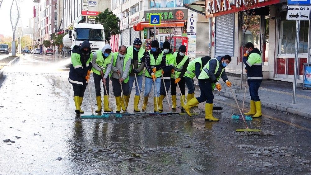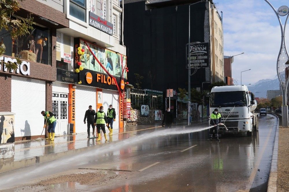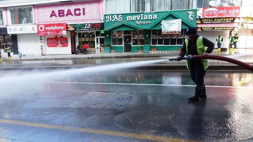 Van'ın İpekyolu Belediyesi, korona virüsle mücadele kapsamında hafta sonu uygulanan sokağa çıkma kısıtlamasını fırsata çevirerek ortak kullanım alanlarını dezenfekte etti