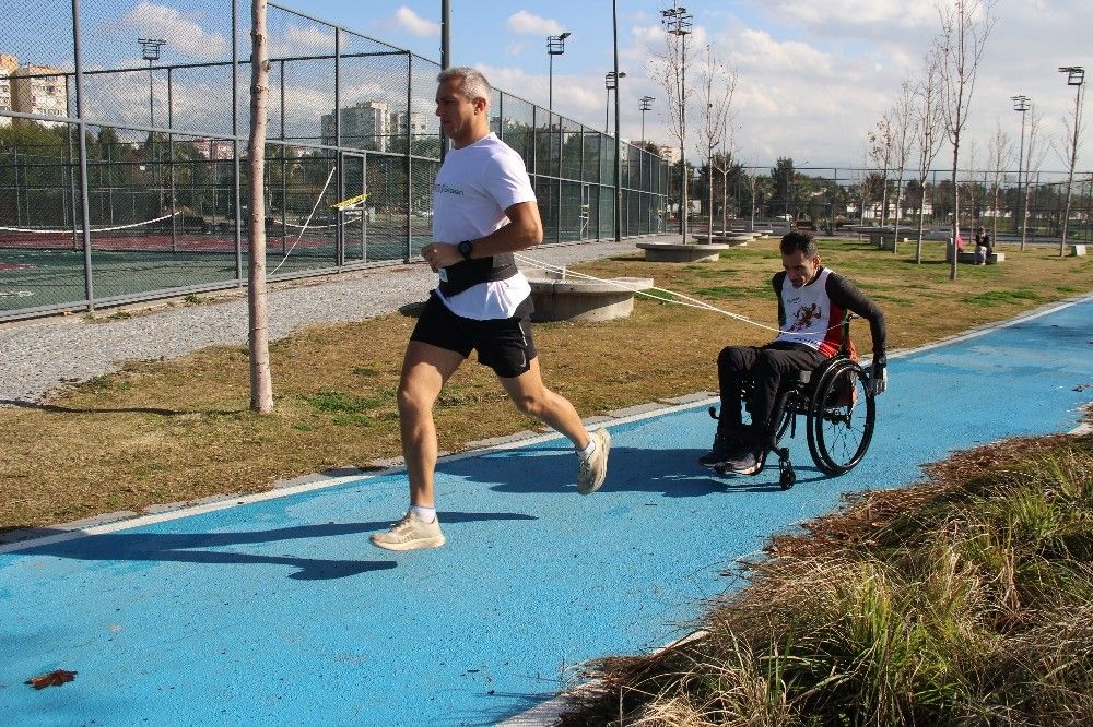 Bedensel engelli Okan Aracagök ve Milli Triatlet Mert Onaran, birbirlerine bağladıkları ip yardımıyla maraton koşularına katılıyor. En son Runatolia Antalya Maratonu'nda 42 kilometrelik mesafeyi koşan ikili, birbirlerine iple değil gönülden bağlı olduklarını söyledi.