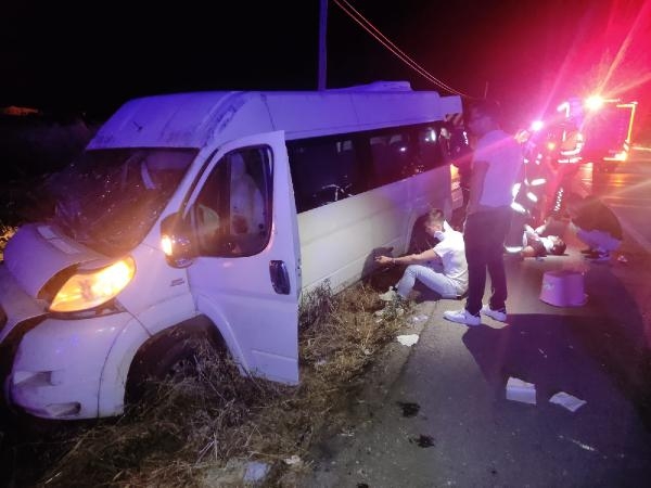 BALIKESİR'in Susurluk ilçesinde, seyir halindeyken lastiğinin patlaması sonucu kontrolden çıkarak şarampole devrilen işçi servisinin sürücüsü ile araçtaki 13 işçi yaralandı.