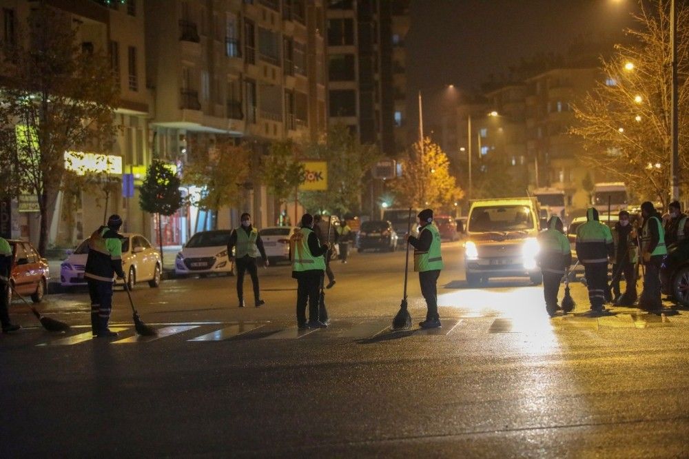 İçişleri Bakanlığının korona virüs ile mücadele amacıyla valiliklere gönderdiği genelge kapsamındaki tedbirlerin 21 Kasım Cumartesi saat 20.00 itibarıyla uygulanmaya başlanmasıyla İpekyolu Belediyesi ekipleri, sessizliğe bürünen cadde ve sokaklarda halay çekerek temizlik çalışması yaptı.