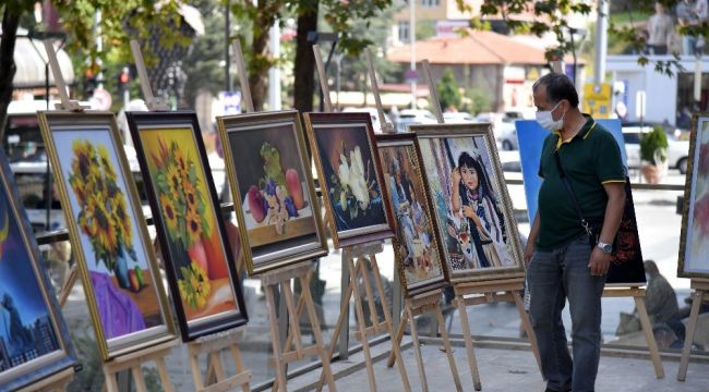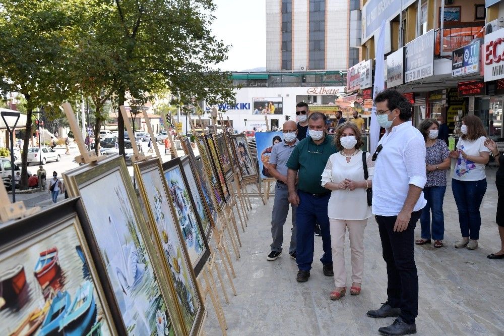 Isparta Belediyesi Sanat ve Meslek Eğitim Kursları (ISMEK) bünyesinde açılan yağlı boya resim kursuna katılan kursiyerlerin yaptığı resimler, Kaymakkapı Meydanı'nda sergilendi