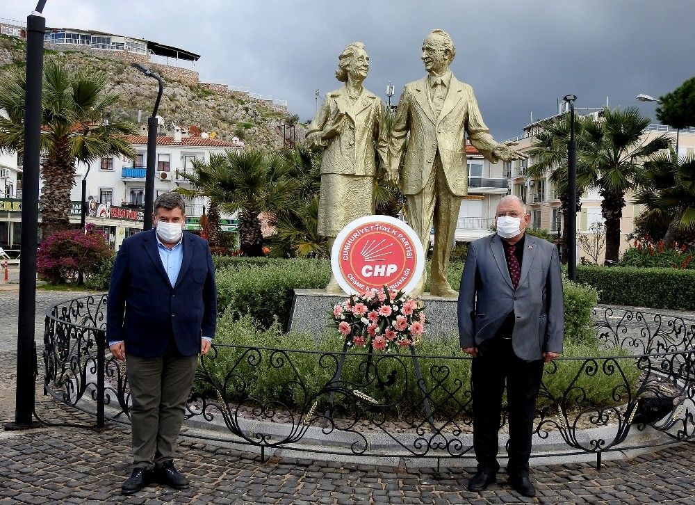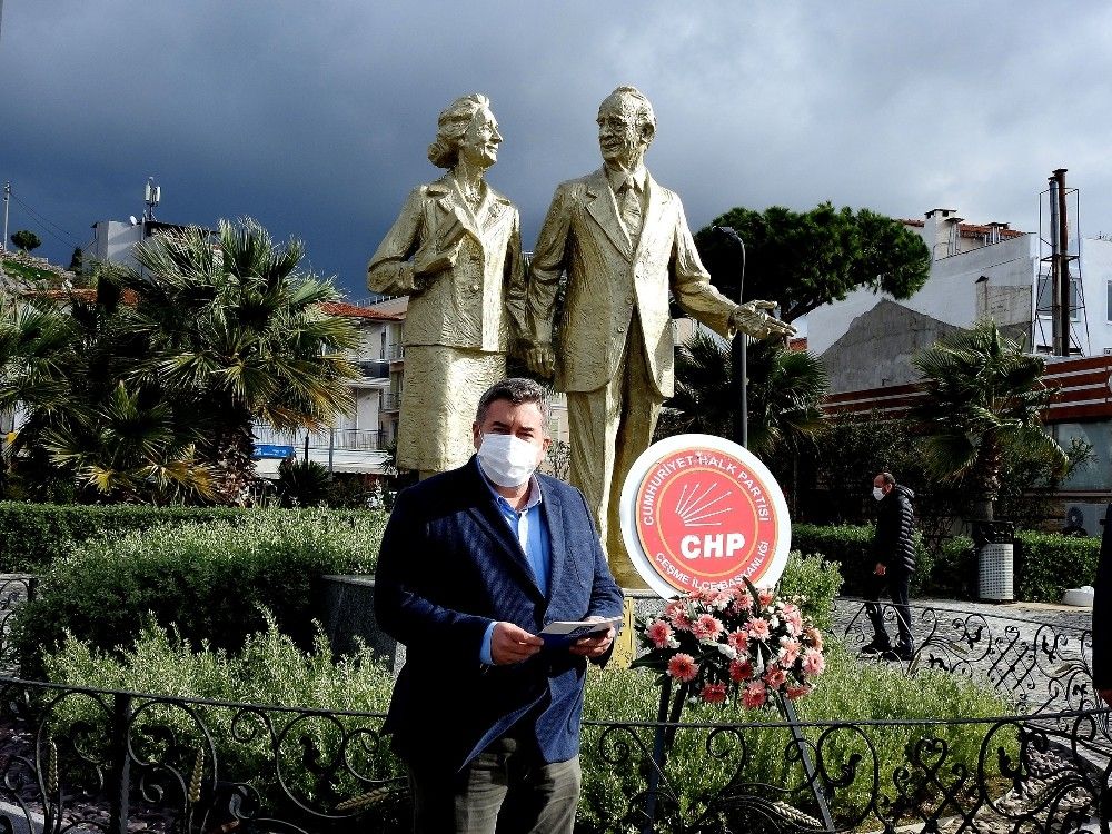 Çeşme sahilindeki İsmet İnönü ve eşi Mevhibe İnönü'nün heykeli önünde, pandemi önlemleri çerçevesinde az sayıda katılımla gerçekleştirilen anma törenine, Çeşme Belediye Başkanı Ekrem Oran, CHP İlçe Başkanı Sait Kavasoğullar, Yönetim Kurulu Üyeleri ve Belediye Meclis Üyeleri katıldı.