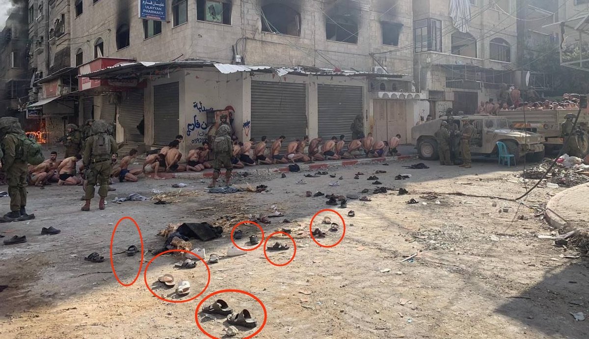 İsrail askerleri, Filistinlileri, iç çamaşırları hariç, tüm kıyafetlerini çıkarmaya zorladı. Filistinliler, daha sonra kamyonlara bindirilerek, henüz bilinmeyen bir yere doğru götürüldü.