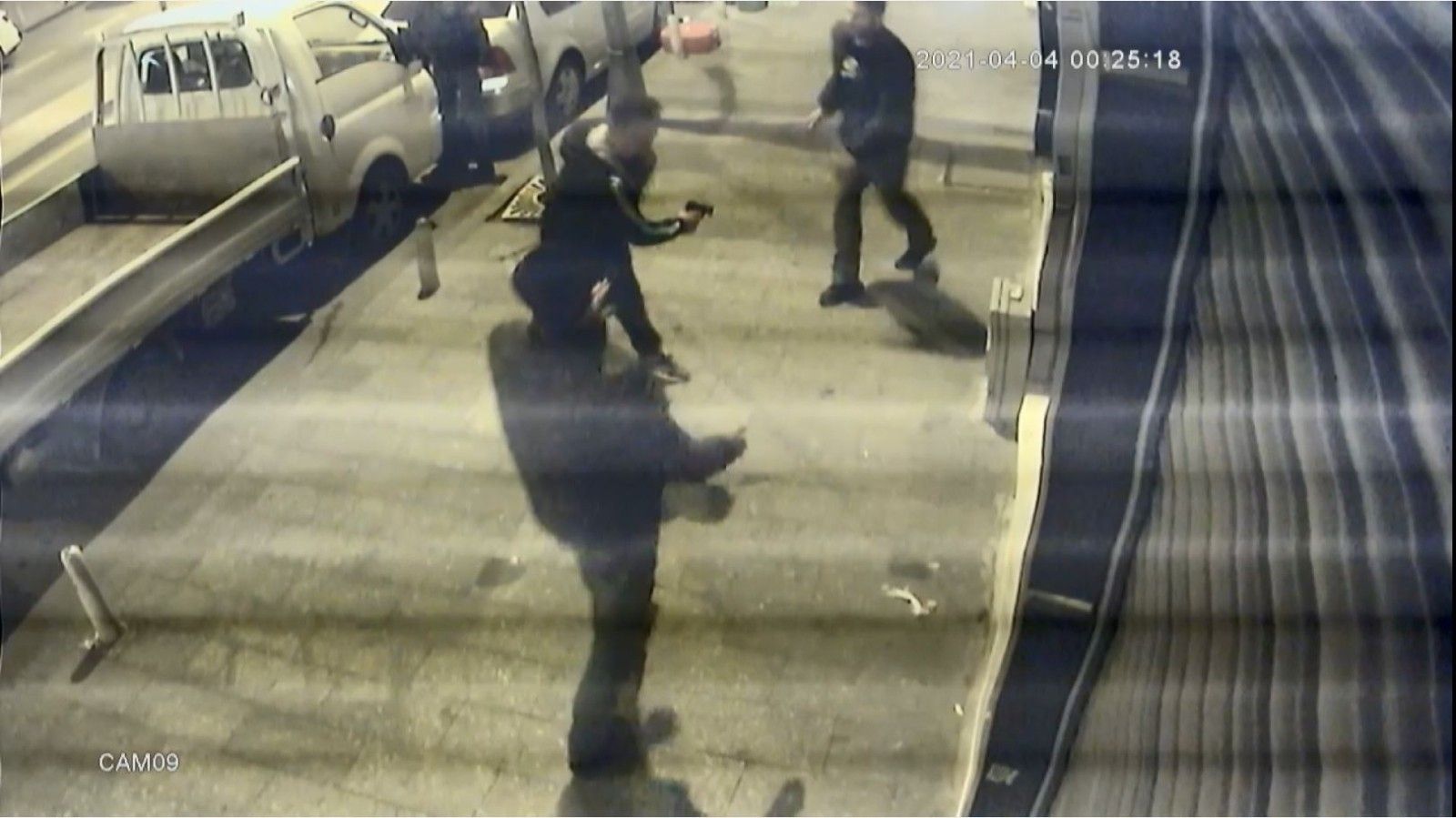 Dehşet anları ise, güvenlik kameralarına saniye saniye yansıdı. Görüntülerde, iki taraf birbirleriyle tartışmaya başlıyor. Tartışmanın büyümesi üzerine taraflardan biri eline aldığı döner bıçağını sallıyor. Tarafların arkadaşlarının araya girmesiyle ikili bir süreliğine uzaklaştırılıyor. Kavganın devam etmesi üzerine tabancasını çeken Adil T., bıçaklı şahsı tekme ve yumruklarla darp ediyor. Ardından da tabancayla şahsa ateş açıyor. Karnından isabet alan şahıs saldırgana tekme atıyor. Kavganın ardından taraflar arkadaşları tarafından uzaklaştırılıyor.