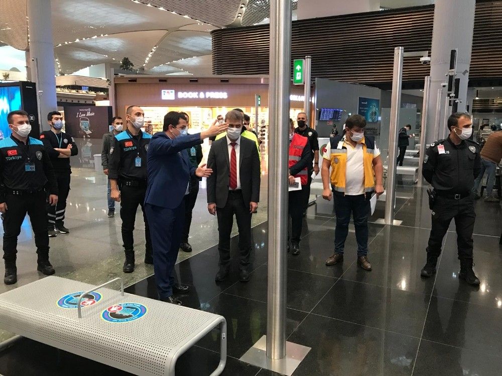 İçişleri Bakanlığı'nın korona virüs salgınıyla mücadele kapsamında hazırladığı genelge doğrultusunda, İstanbul Havalimanı'nda denetimler gerçekleştirildi. Pandemiyle beraber İstanbul Havalimanında Mülki İdare Amiri İsmail Şanlı ve diğer yetkililer önlemlerden taviz vermiyor. İstanbul Havalimanı'nda sık sık denetleme yapan yetkililer, pandemi önlemlerinde gevşemeye ve ihlale izin vermiyor.