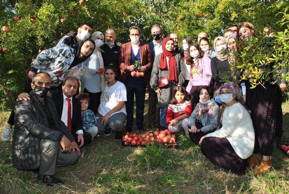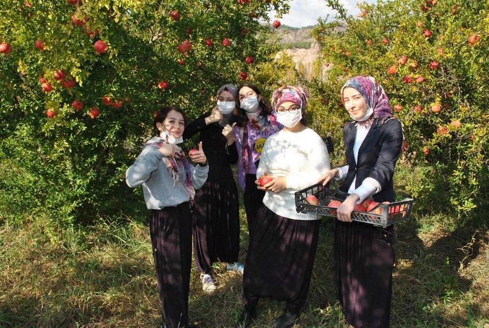 Eskişehir Sarıcakaya Belediyesi'nin misafiri olarak ağırlanan Ümraniyeli gençler kendileri için hazırlanan tarlada nar hasadı etkinliğine katıldı