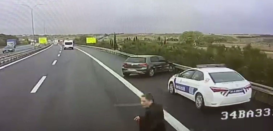 Tem otoyolu Büyükçekmece mevki'inde maddi hasarlı kaza yaptıktan sonra yola çıkan 52 yaşındaki doktor İbrahim Eskitütüncü'nün hayatını kaybettiği kaza anı saniye saniye güvenlik kamerasına yansıdı.