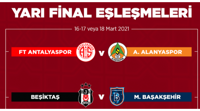 Tek maç eleme usulüne göre oynanacak yarı final müsabakalarında, Fraport TAV Antalyaspor ile Aytemiz Alanyaspor, Beşiktaş ile de Medipol Başakşehir finale yükselmek için mücadele edecek.