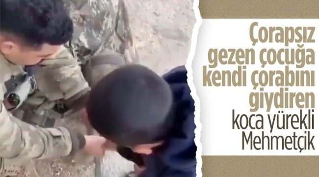 Her daim halkının yanında olan kahraman Türk askeri dünyaya örnek olmaya devam ediyor. Mehmetçik'in çorapsız ve terlikle gezen çocuğa, kendi yedek çorabını giydirmesi yürekleri ısıttı.